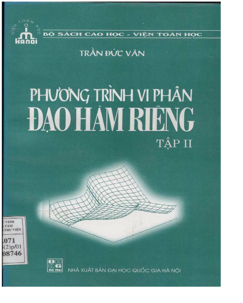 Phương trình vi phân đạo hàm riêng tập II/ Trần Đức Vân.- Hà Nội: Đại học Quốc gia, 2001.- 243 tr4., 23 cm.