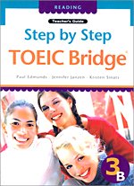 Step by step TOEIC Bridge: Reading 3B to help beginning and intermediate develope our listening, grammar, and reading skills. Through practice of activities and problems modeled on the TOEIC Bridge test, students can become better test takers while developing basic comprehension and communication skills in Enghlish.