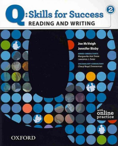Q skills for success 2 : Reading and writing / Joe McVeigh, Jennifer Bixby; Series consultants : Marguerite Ann Snow, Lawrence J. Zwier; Vocabulary consultant: Cheryl Boyd Zimmerman.- Oxford;New York: Oxford Univ Press, 2011.- 205 p. ; ill, 24 cm