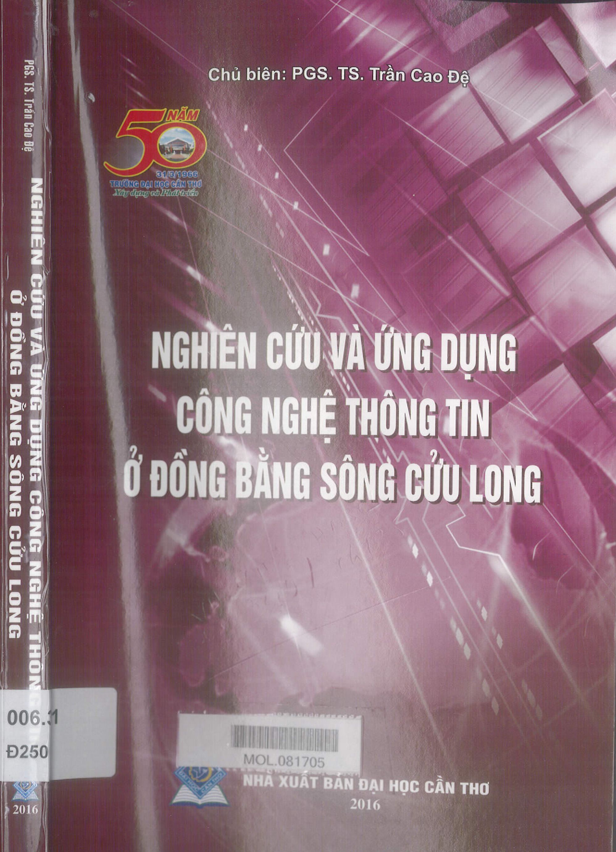 Nghiên cứu và ứng dụng Công nghệ thông tin ở Đồng bằng sông Cửu Long / Trần Cao Đệ. – Cần Thơ : Nxb. Đại học Cần Thơ, 2016. – 296 tr. ; minh họa, 24 cm, 9786049196379. – 006.31/ Đ250